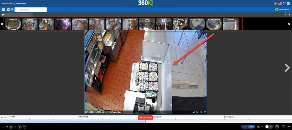 Each camera view shows a different camera from your location so you can easily monitor your store.