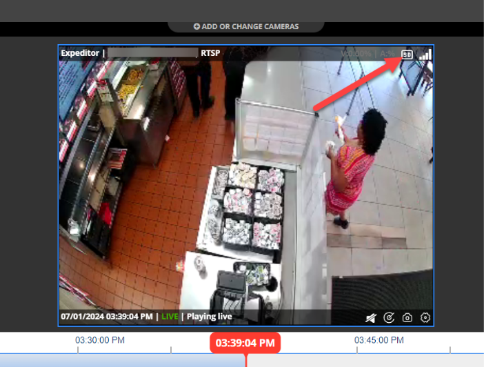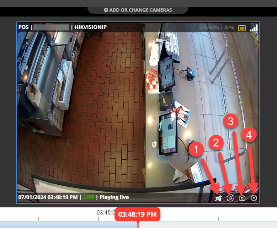 On the bottom left-hand side of each camera view, you will find date and time of the on-screen video along with the status of the video (Live, Historical, or Buffering).