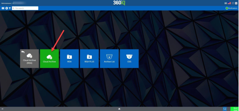 To access the Cloud Archive, navigate to your Home Screen and click the Cloud Archive (RISA) tile, then click Cloud Archive. You can also access it via the Quick bar’s Cloud Archive tile.