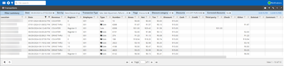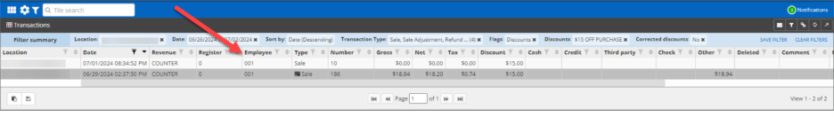 By clicking on that number, you will see all discounted transactions of that type at that location conducted by that employee.