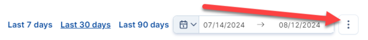 If you are looking for a different date range, go to the top right corner and select Last 7 days or Last 90 days, or use the custom date selector to choose a different range.