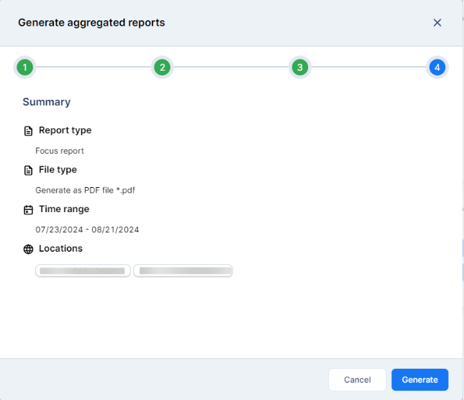 In step 4, review the Summary and make any necessary changes. Hit Generate to compile the report.