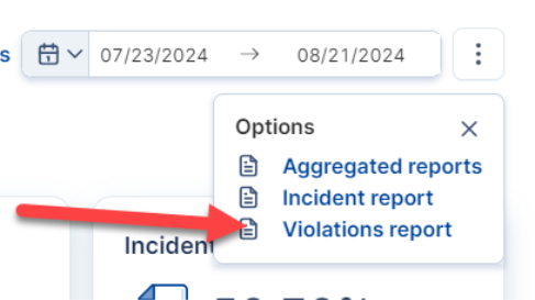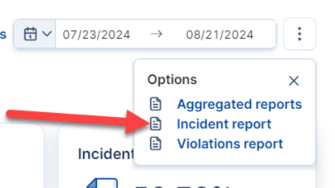 Below the Aggregated reports option, you will see an option to generate an Incident report. Click it.