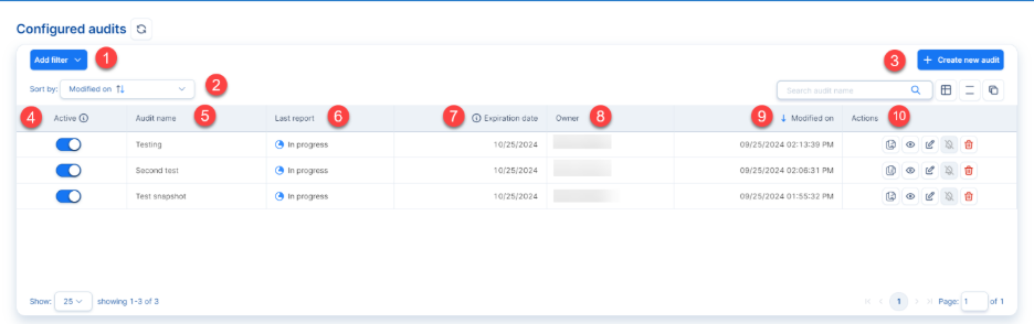 - Modified on: The date on which the Snapshot Audit was created/configured.