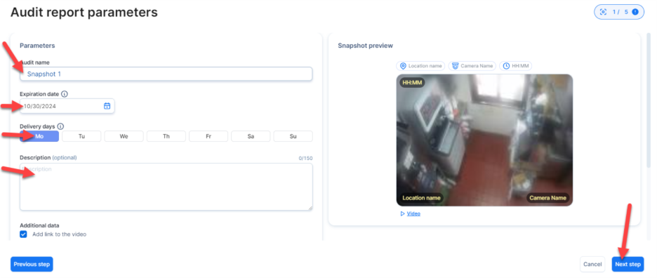 - In the next section, you will determine your Audit report parameters.