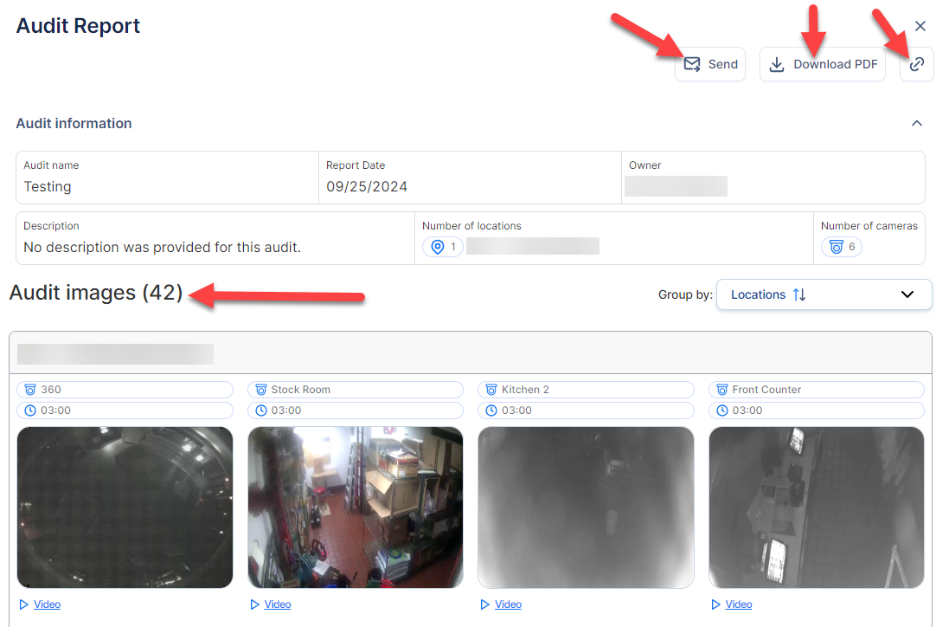 - In this detailed Audit Report, you can view the Audit images, Send them via email, Download them as a PDF, or copy the Link to your clipboard.