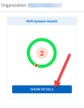 To view NVR System Health, click the SHOW DETAILS button under the NVR System Health header.