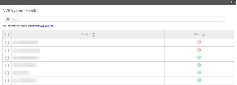 • Red: Network Video Recorder (NVR) failed health checks for longer than 60 minutes.